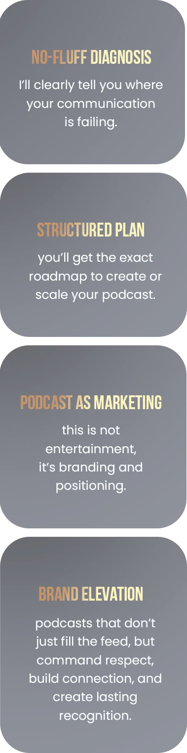 In the Podcast Authority Map, I reveal what’s blocking your voice and deliver the strategy to make your brand impossible to ignore.
